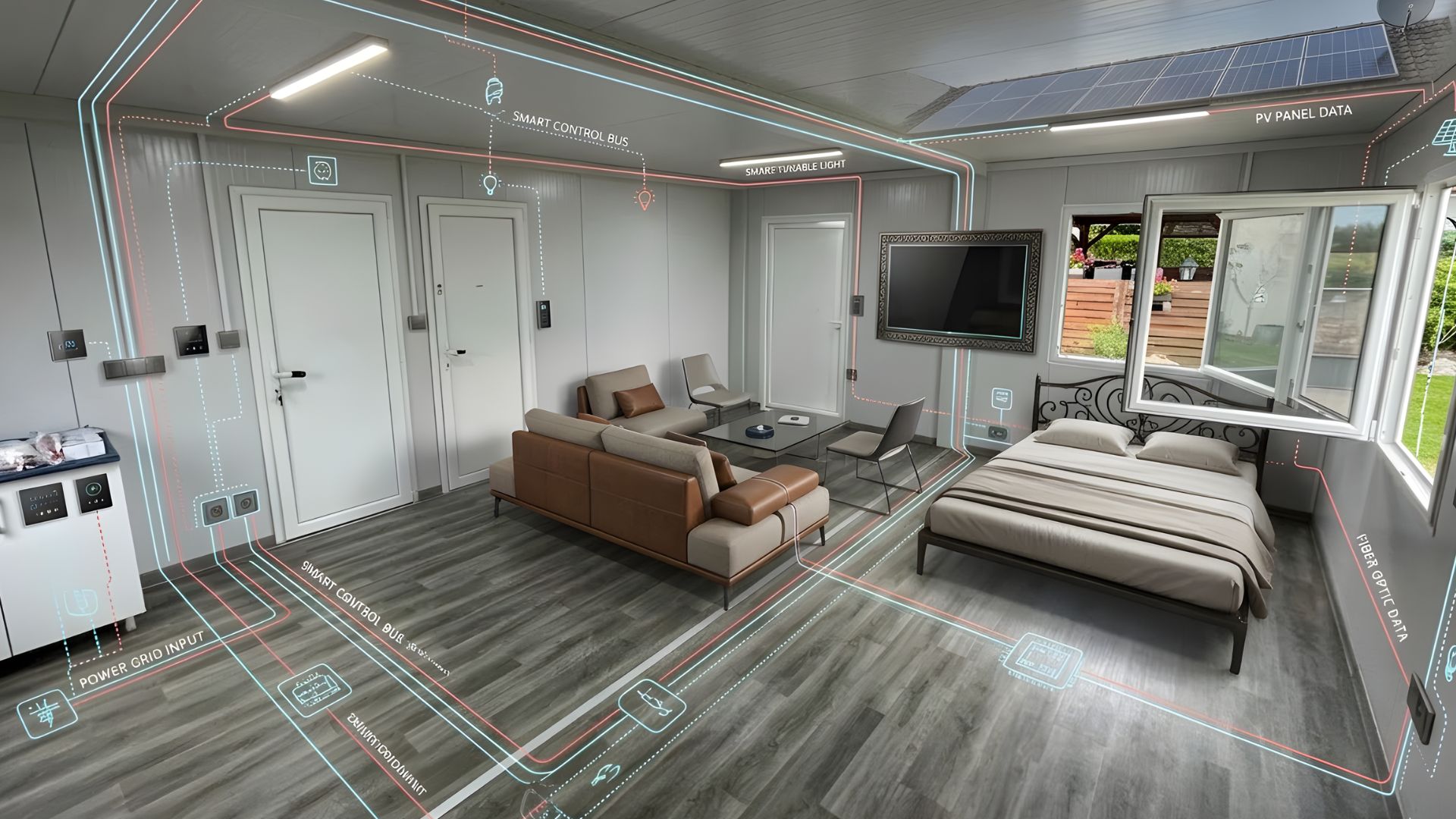 Zapomeňte na sekání do zdí, tahání kabelů nebo shánění řemeslníků na poslední chvíli. Naše obytné moduly od nás odjíždějí s kompletní a profesionálně provedenou elektroinstalací, která splňuje nejpřísnější bezpečnostní normy. Vše je navrženo tak, aby spuštění vašeho nového domova bylo stejně snadné jako zapojení domácího spotřebiče.